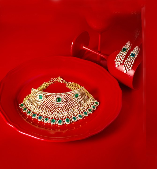Diamond Choker Necklace Set - the Red Bride's magnificent mesh of glitter & glam.