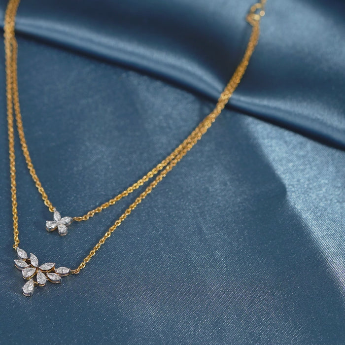 18 Karat Gold Triple Chain- Flower n Leaf Diamond Pendant
