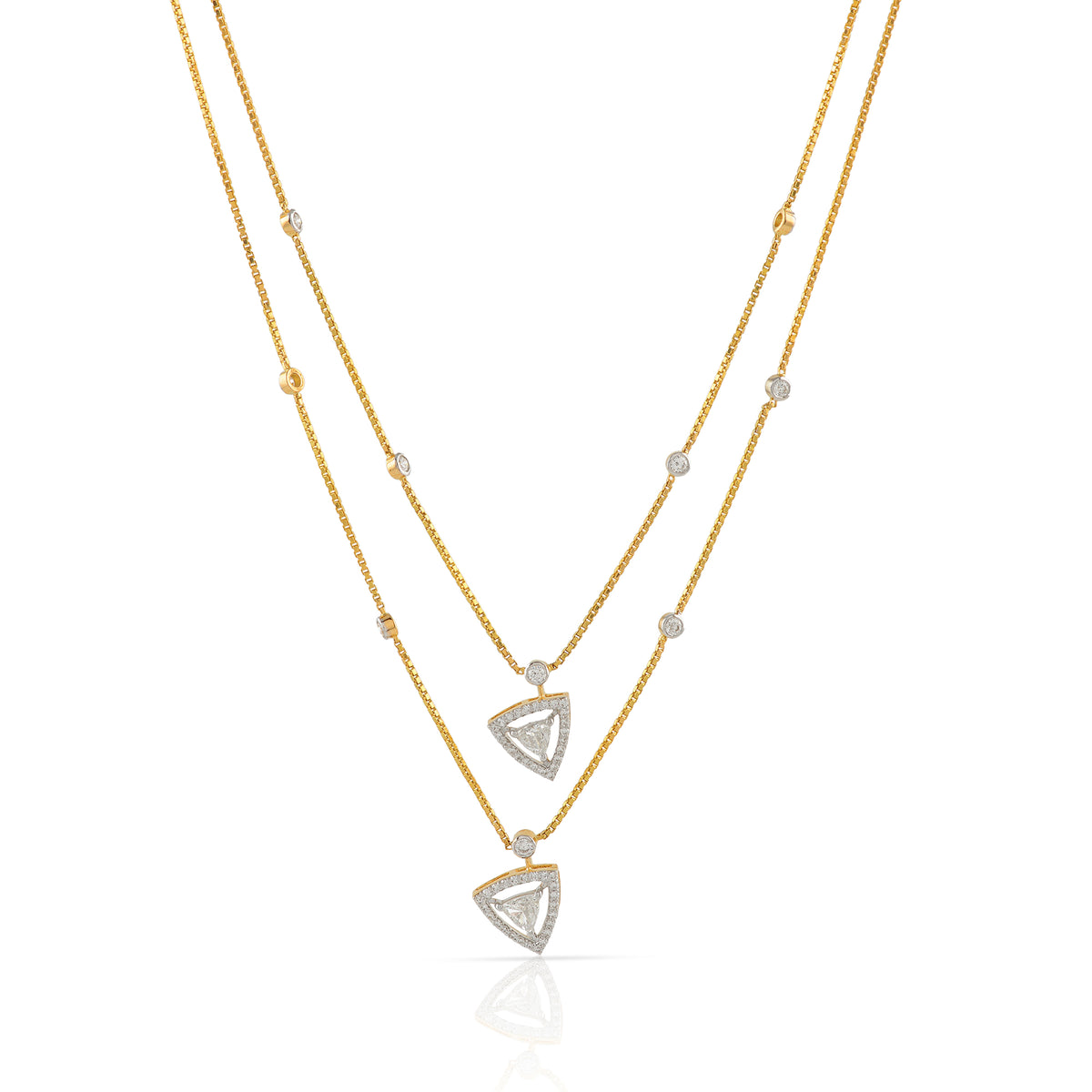 18 Karat Twosome Gold Chain- Trangle andf Round Diamond Pendant