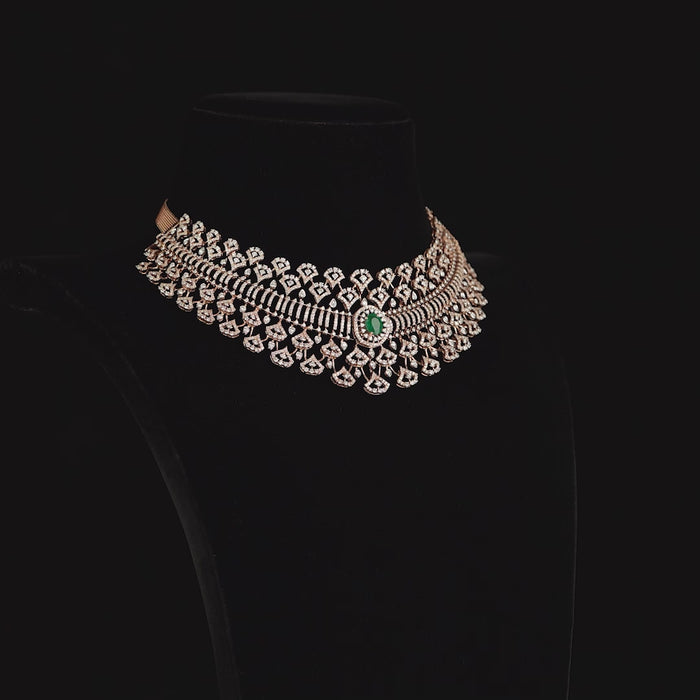 This stunning choker is the perfect way to compliment your pear-shaped diamond ring. Crafted from 18k gold, this choker features a cluster of ruby stones settings. The perfect finishing touch.