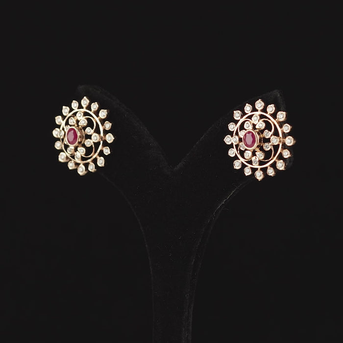 Make a subtle statement with this pair of yellow gold diamond earrings. They are made in flower , a splendid design that will surely add beauty to your look. These earrings are crafted from 18K gold with VVS diamonds around its centre.