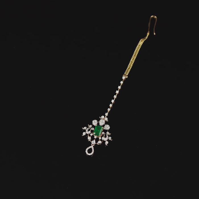 Be a bit of a princess and treat yourself to this maang tikka. This set features a rich golden background, embellished with diamonds and gemz for a bling of elegance without compromising on its feminine charm.