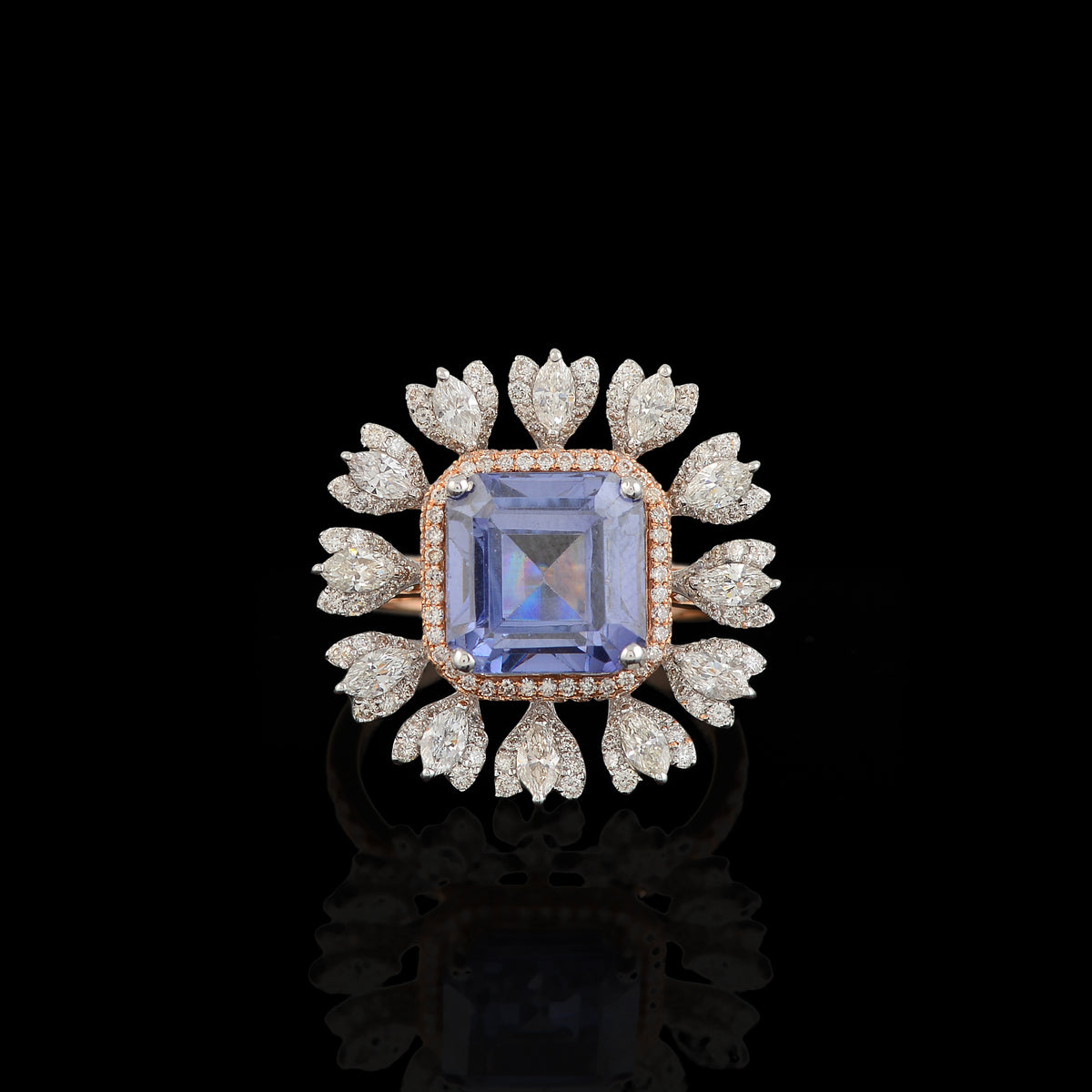 This simple purple stone with diamond ring accents is the perfect addition to your collection. With its elegant design and sophisticated cut, this ring will complement all of your outfits, from casual to business, and make you feel like a million bucks!