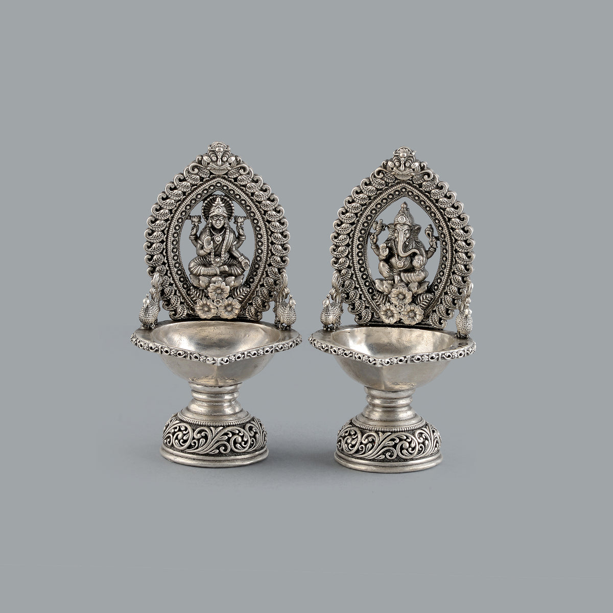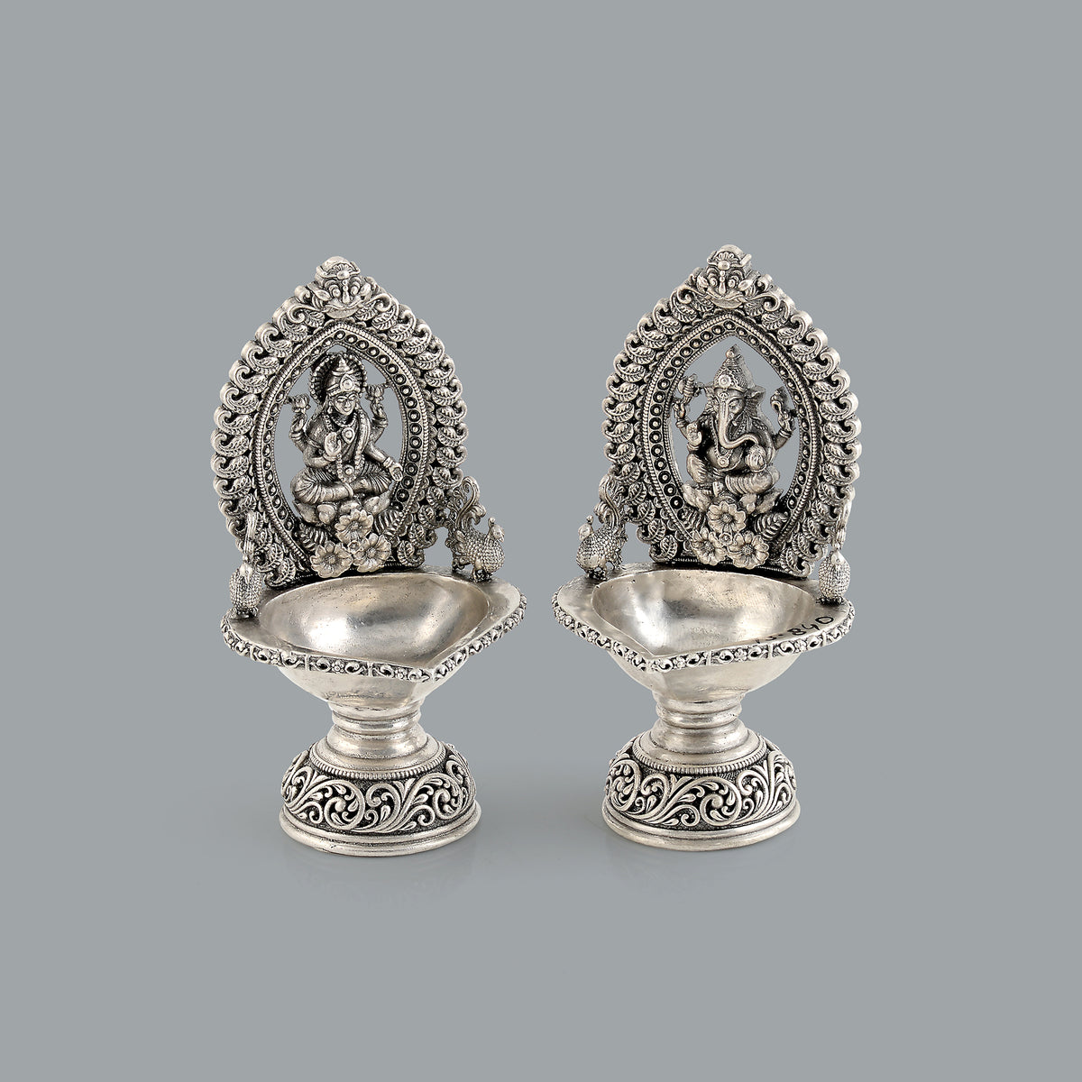 Crafted with exquisite antique silver, these statues of Laxmi Devi and Ganesh are perfect for creating a serene and sacred ambiance in any space. Showcasing intricate details and a rich cultural heritage, these statues will add a touch of elegance and spirituality to your home or office.