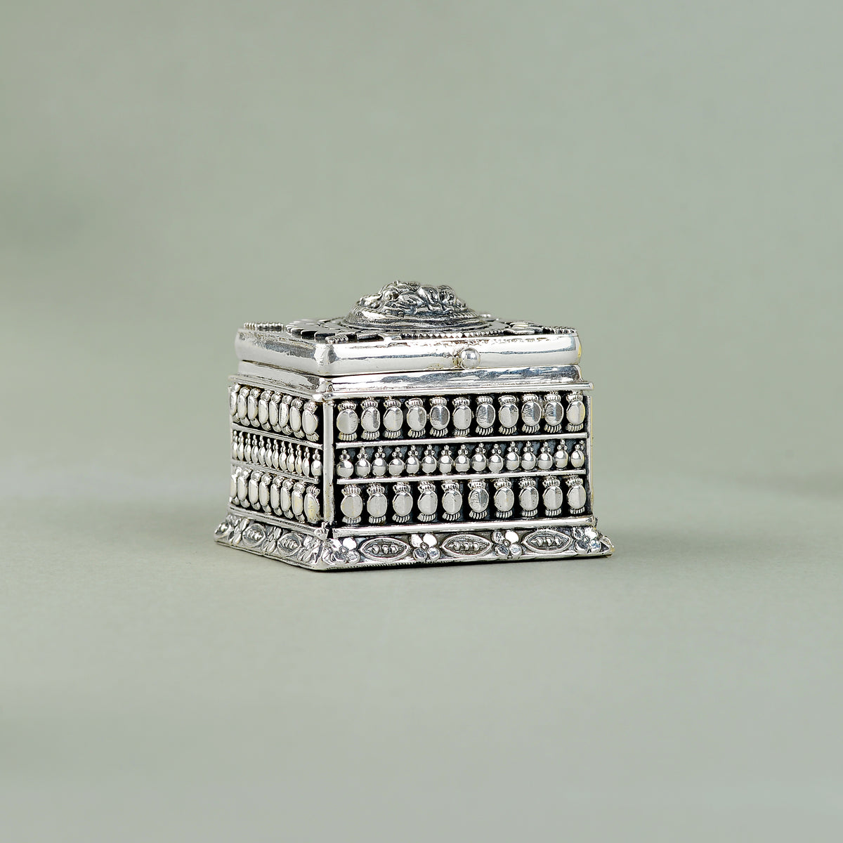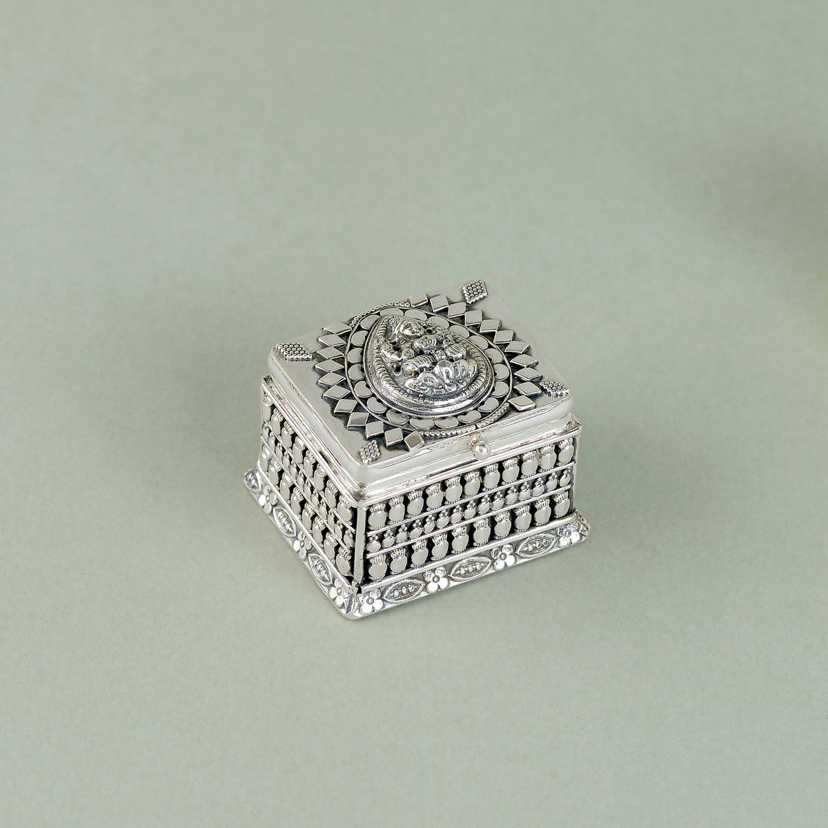 Crafted from 92.5% pure silver, this antique Laxmi Devi Kumkum bowl is a beautiful addition to your home décor. Celebrate tradition with this intricately designed bowl, perfect for storing kumkum and adding a touch of elegance to your puja ceremonies.