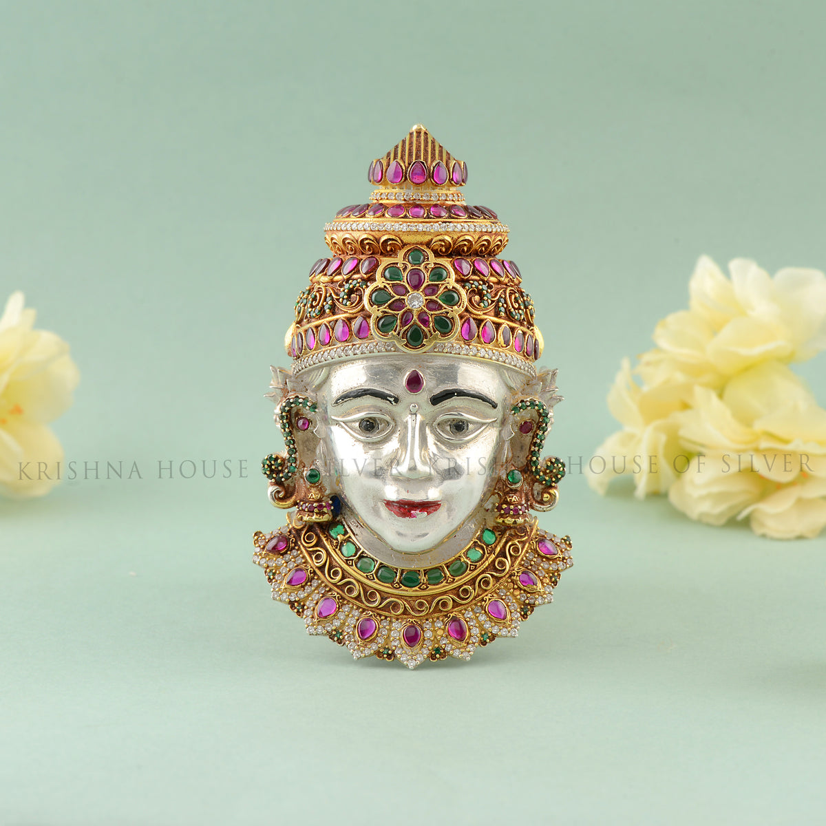 Divine Connection: Connect with the divine presence of Lakshmi through this exquisite silver face mask, a unique and powerful tool for puja.