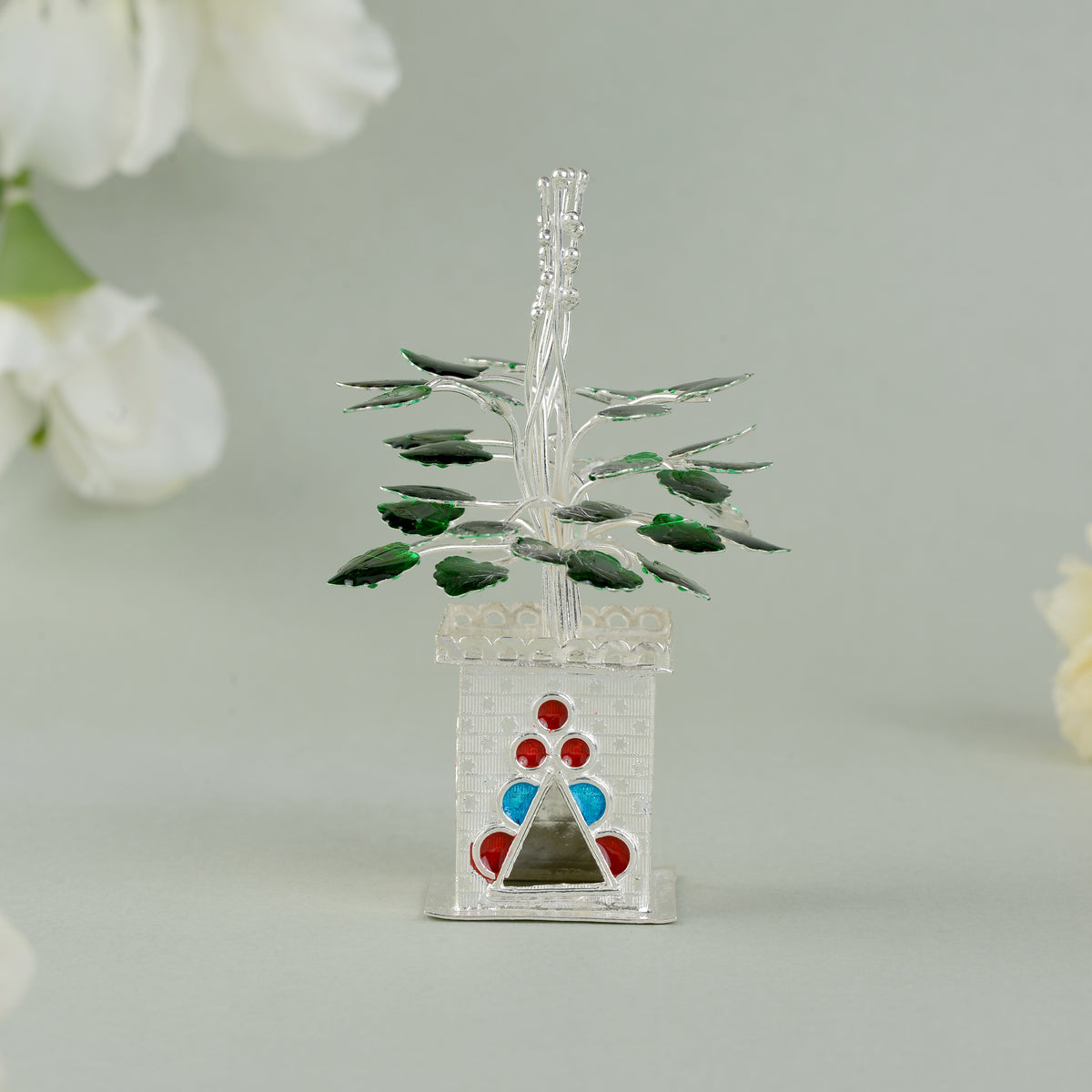 Add a touch of elegance to your wardrobe with our Silver Thulasi Kota featuring intricate Green Leaves design. Made from high-quality silver, this piece is expertly crafted to showcase the beauty of traditional Indian art. Elevate your style and make a statement with this stunning accessory.