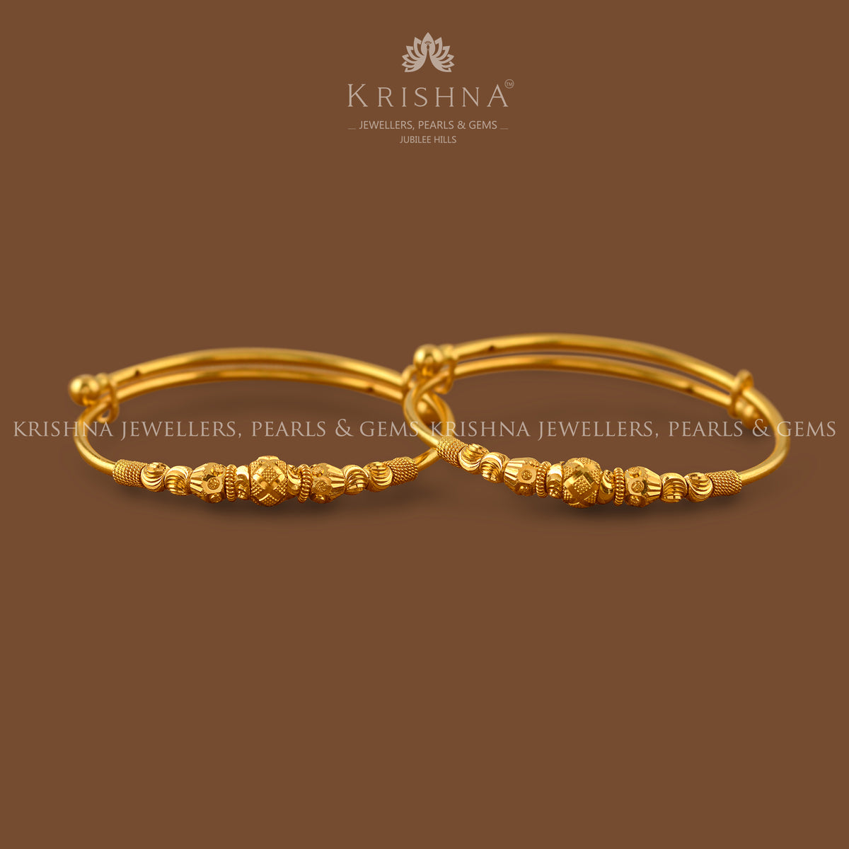 Check out these super cute chic gold bangles! They're made with shiny 22k gold and have the most adorable cat design. Your little angels will totally fall in love with them! These bangles are like little pieces of magic that add extra sparkle to their outfits. Perfect for your stylish kiddos, they'll feel like mini fashionistas with these on. Don't miss out on these precious cat-themed bangles – a purr-fect addition to their jewelry collection!