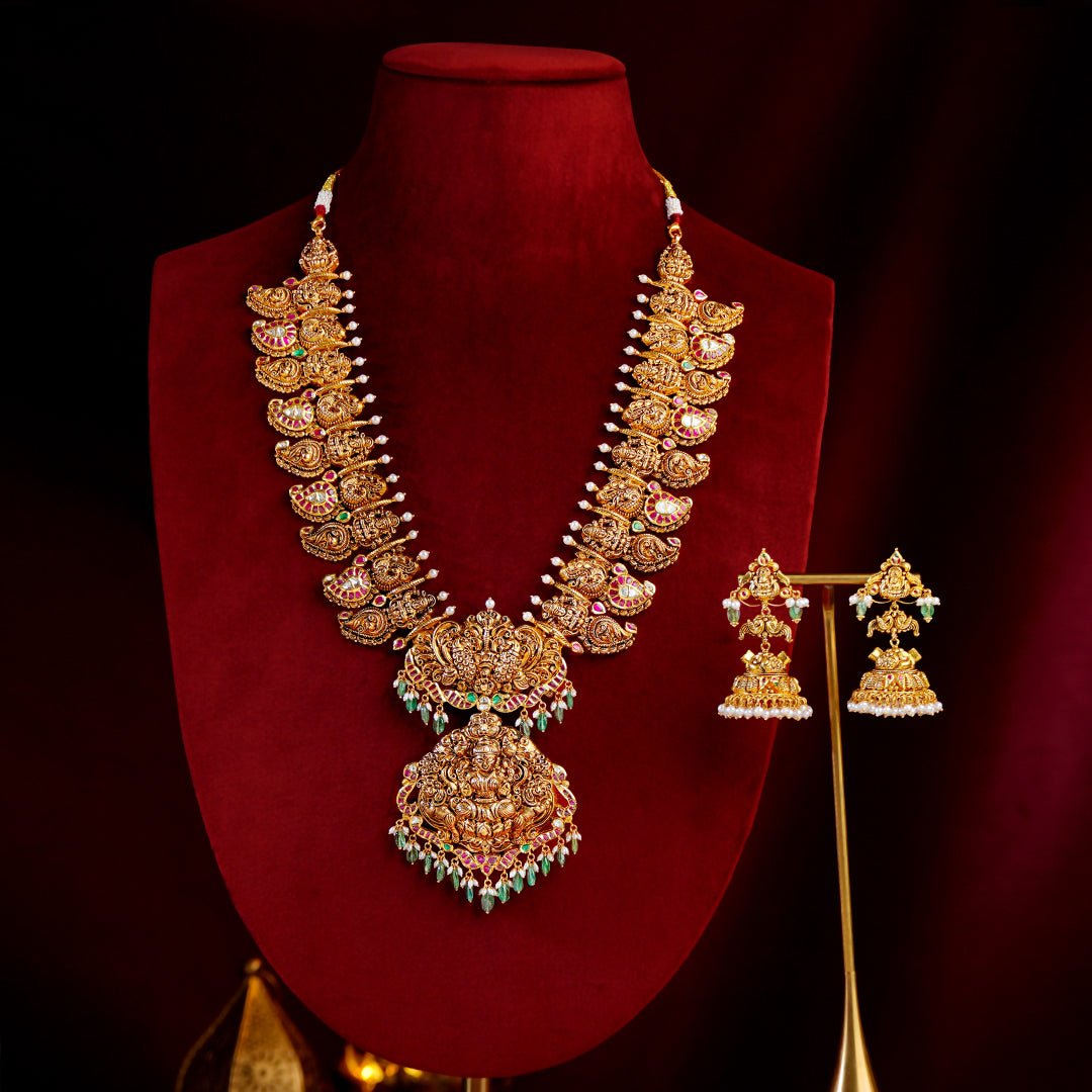 22K Gold Lakshmi Mango Haram Bridal Set with Jhumkas