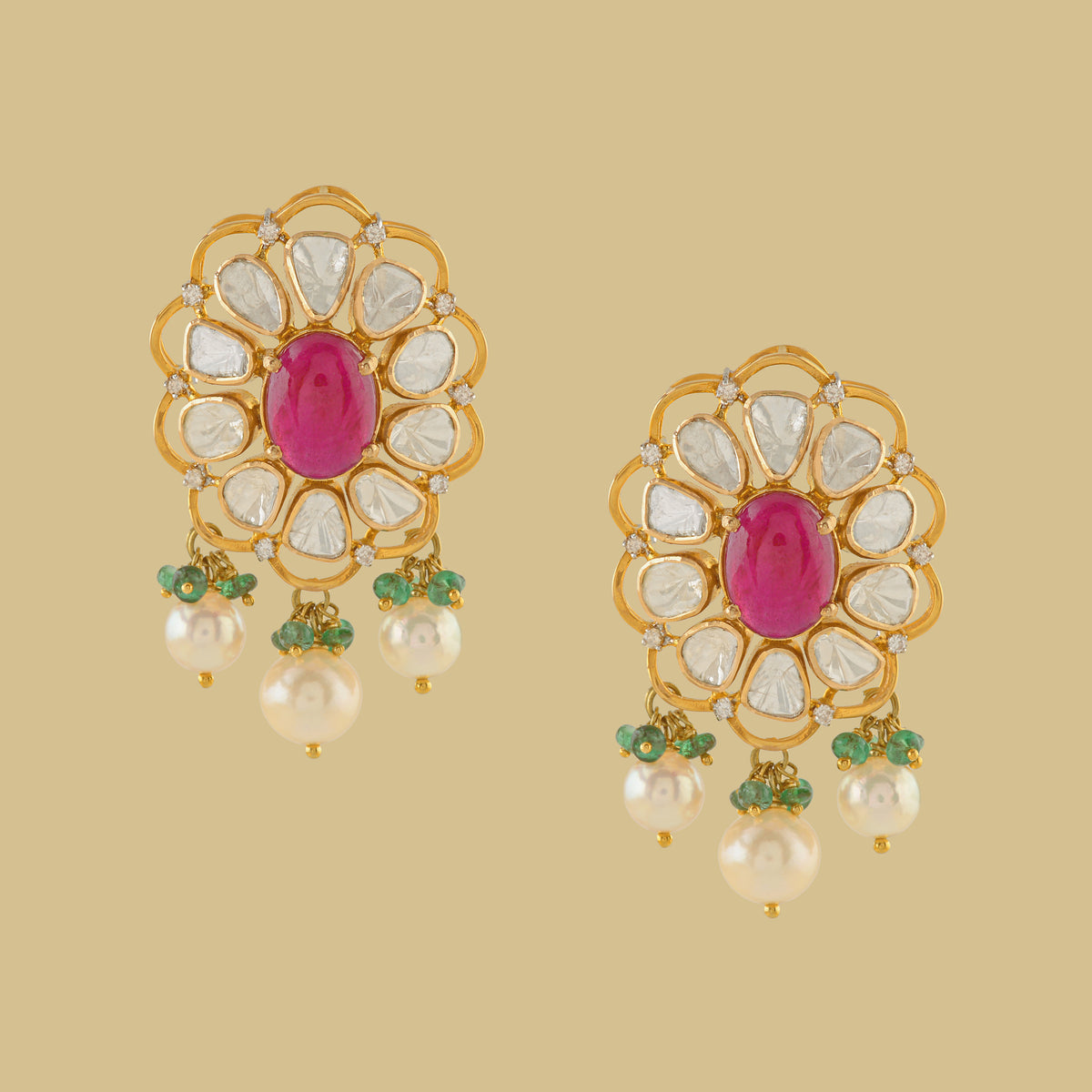 Elegant floral polki studs crafted in gold, radiating a timeless allure. Delicate and captivating, perfect for adding a touch of sophistication to any look.