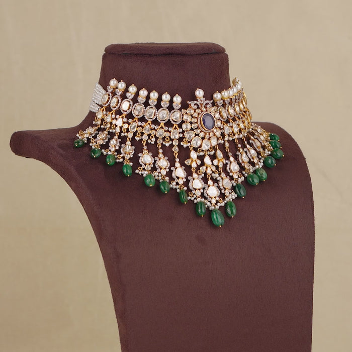Polki Emerald Choker Necklace is crafted with a modern choker design. It features a beautiful chain choker and has matching earrings to match. A perfect gift for your loved ones or girlfriend.