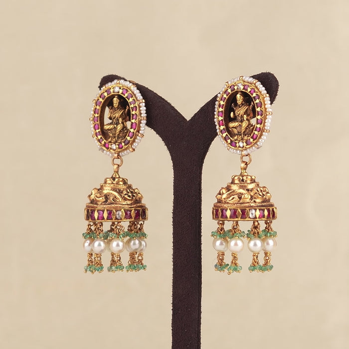 Laxmi Themed 22k Gold Kundan Jhumka Earrings