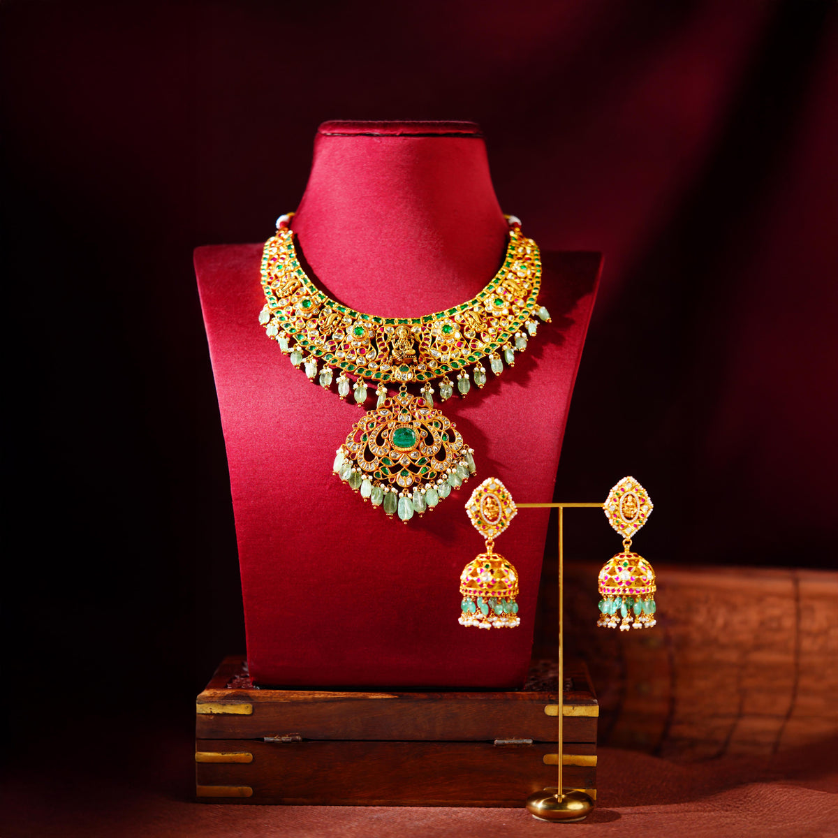 Traditional 22K Gold Kundan Necklace & Earring Set