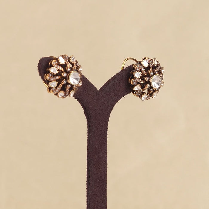 These 18K Victorian studed Polki earrings feature a classic Victorian design, adding a touch of royal elegance to any attire. The Polki stones are expertly set in 18K gold, offering a sophisticated sparkle perfect for special occasions like weddings or parties.Delivered in secure, stylish packaging, these 18k Victorian Studed Polki Earrings come with a certificate of authenticity to guarantee their value and purity. Perfect for those looking to add a touch of royalty to their jewelry collection.
