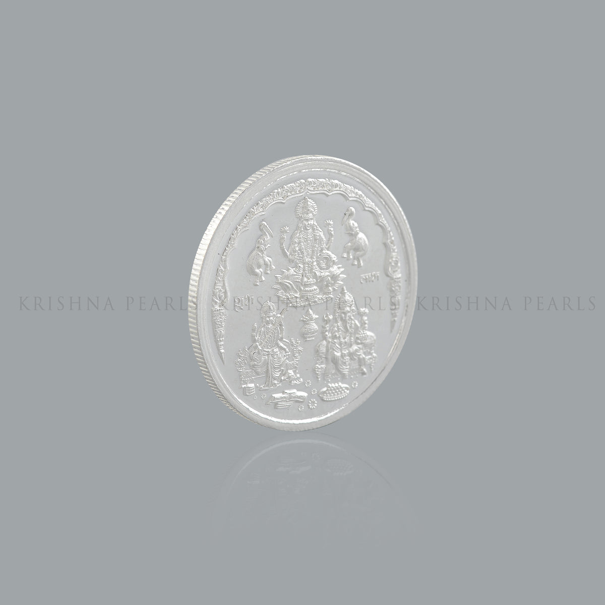 Laxmi, Sarswathi, Ganesh Motifs Silver Coin