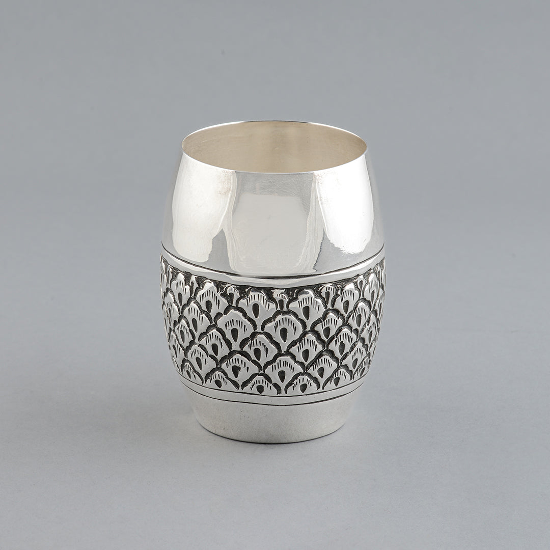 This beautiful set includes four different sized plates. Every piece is crafted with 92.5 pure silver, and is finished with fine details of a floral design along the edges.