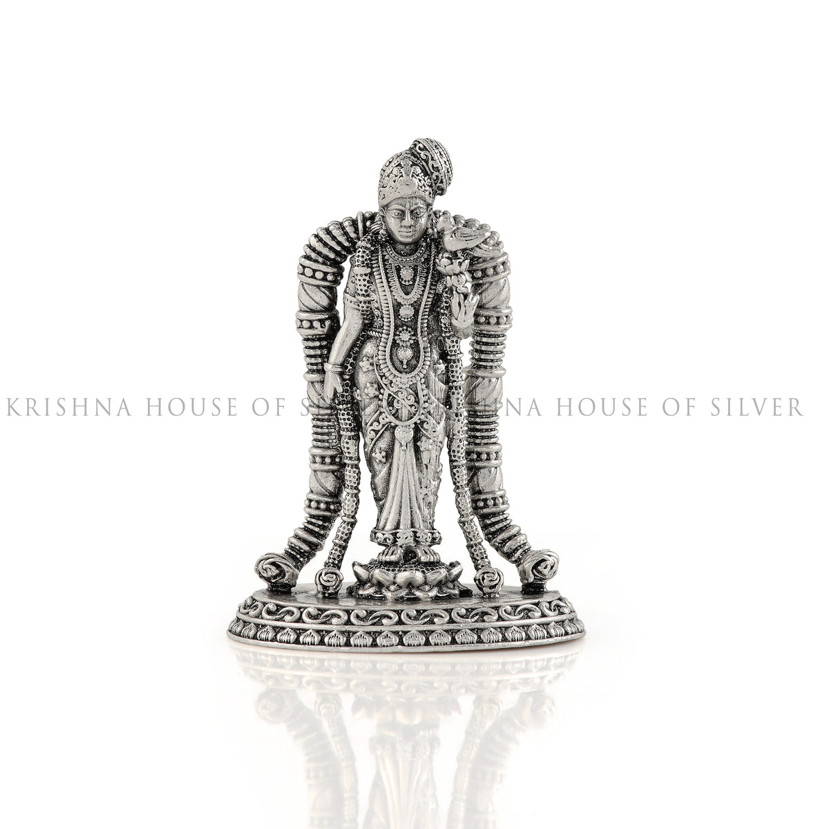 Andalama, a revered Alvar saint and poet-saint in South Indian Hindu tradition, is celebrated for her unwavering devotion to Lord Vishnu (specifically, his form as Ranganatha). She is often regarded as a divine consort or an incarnation of Bhudevi (Goddess Earth), embodying purity, grace, and profound spiritual devotion. Her Tamil hymns, known as the Tiruppavai and Nachiyar Tirumozhi, are filled with passionate love and longing for Vishnu, symbolizing the intimate connection between the devotee and the divine. These works continue to inspire faith, love, and spiritual growth among devotees.