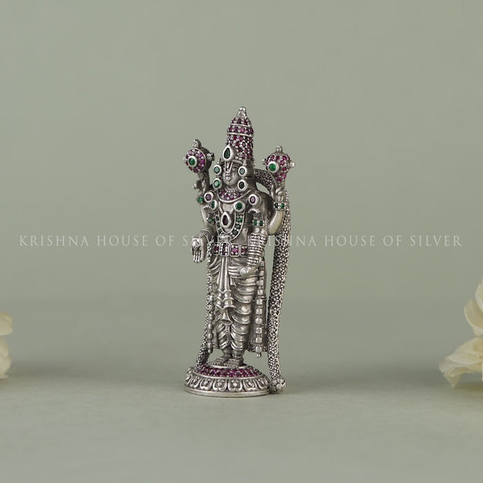 Antique Silver Tirupati Balaji Idol - With Beautiful Stone work