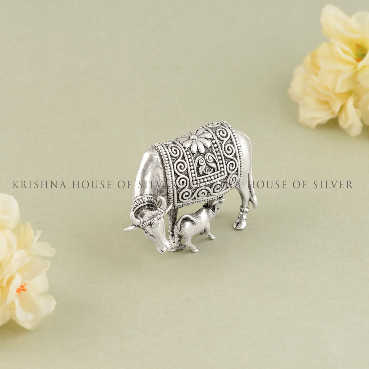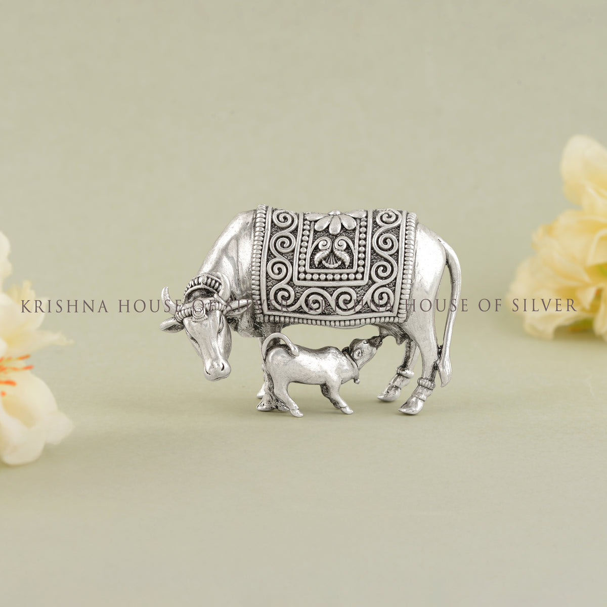 A Legacy of Trust: This Silver Gaumatha Idol With Calf comes to you from Krishna Jewellers Pearls and Gems, established in 1983. Trusted by lakhs of customers for generations, our Hyderabad, Jubilee Hills location represents our commitment to quality and service.