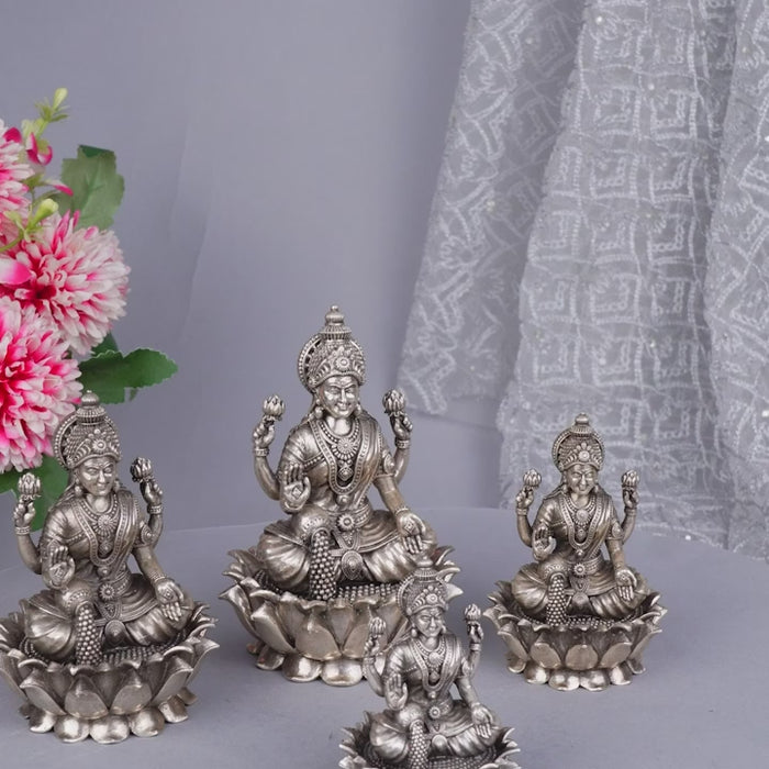 Goddess of Wealth: Invite wealth and prosperity into your home with this beautiful silver Lakshmi idol, a powerful symbol of abundance and good fortune.