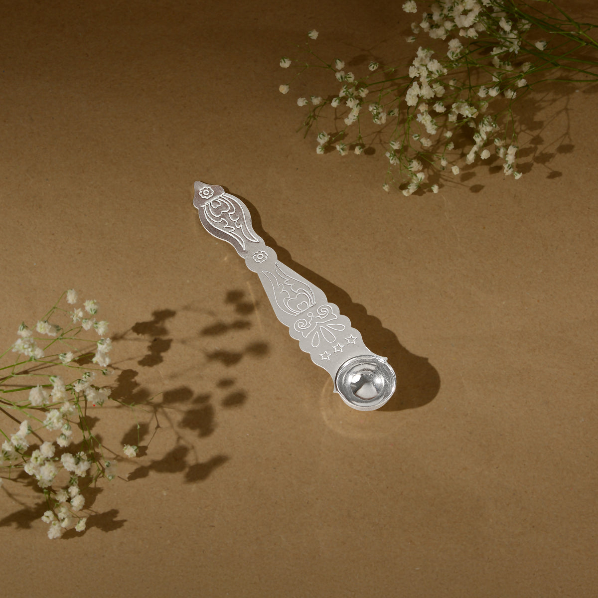 Complete your sacred pooja rituals with this beautifully crafted 92.5 pure silver Udharni. This traditional Hindu ritual spoon is an essential accessory, typically used with a Panchapatra (holy water vessel) for offering holy water, charanamrut (nectar), or other sacred liquids during prayers and ceremonies. The Udharni features an elegant design and a radiant polished finish, symbolizing purity and devotion. Made from high-quality sterling silver, it adds a touch of authenticity and auspiciousness to your home altar. This durable and timeless piece is also a thoughtful gift for religious occasions.