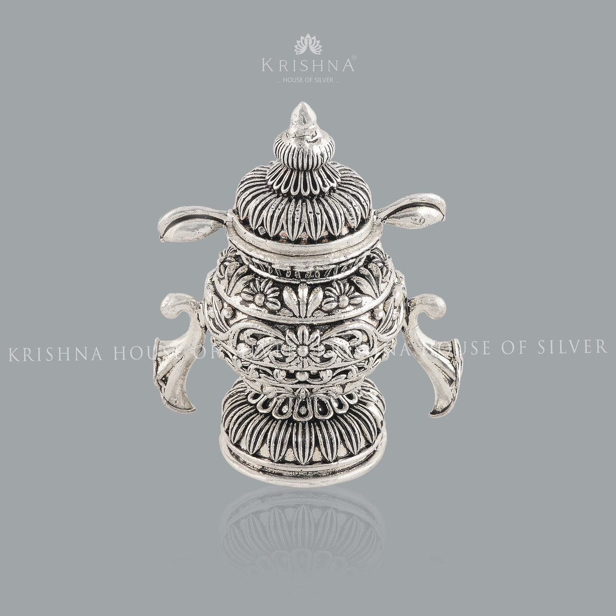 Where tradition meets enigma, the silver kumkum box defies norms. Eyes watch over sacred offerings, and arms reach for cosmic energy. Embrace the peculiar and embark on your spiritual journey.