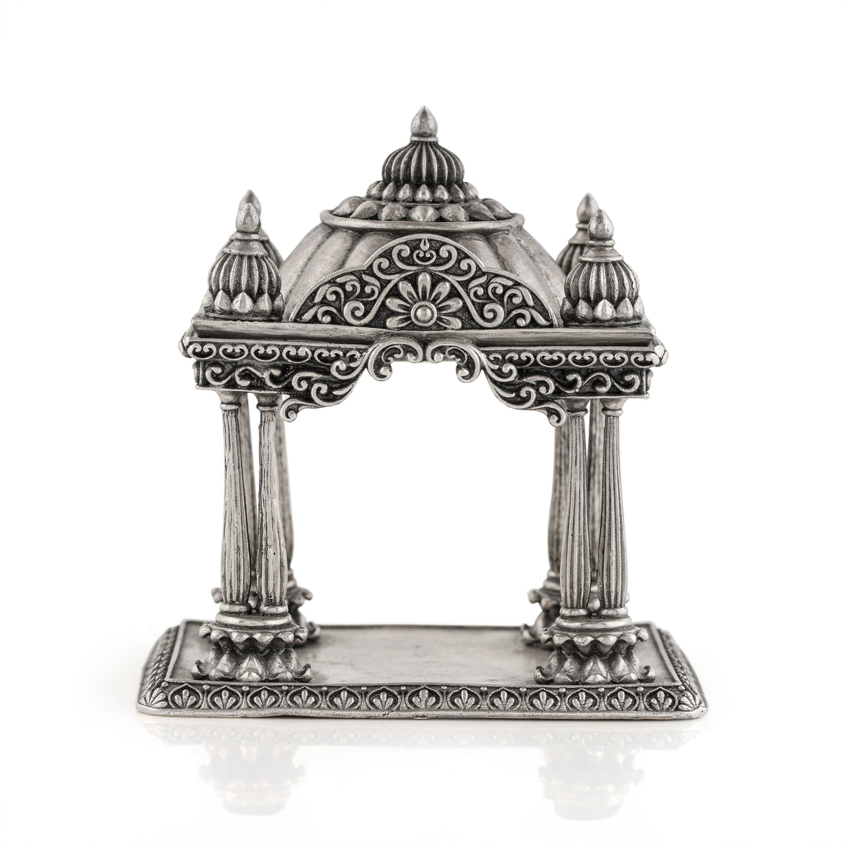 This beautifully crafted Antique Silver Mandir showcases intricate floral designs and is made from high-quality silver. Ideal for religious ceremonies and home decor, this mandir adds a touch of elegance and tradition to any space. The antique finish gives it a vintage look, making it a unique piece to cherish.
