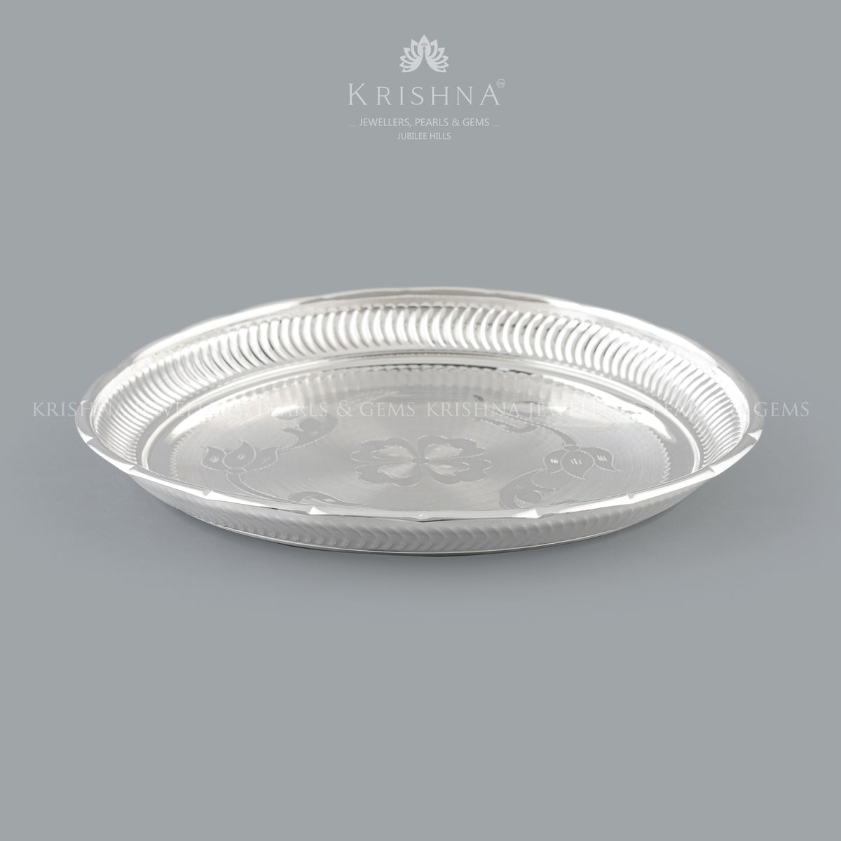 Made from premium silver, this pooja plate is durable and long-lasting, ensuring that it will be a cherished item for years to come. Its intricate design and delicate engravings make it a true work of art, showcasing the skill and craftsmanship of the artisans who created it.