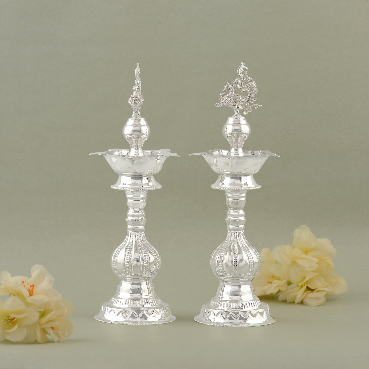 Elegant Peacock Design Silver Deepam Stand 92.5 Pure Silver