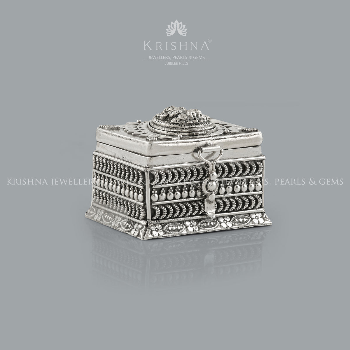 Discover the elegance of our 92.5 Silver Kum Kum Box, beautifully adorned with the divine Laxmi Devi design. Crafted with precision, this exquisite piece blends tradition and artistry, making it a perfect addition to your spiritual rituals. The intricate detailing highlights the goddess's grace, offering both aesthetic appeal and spiritual significance. Ideal for gifting or personal use.