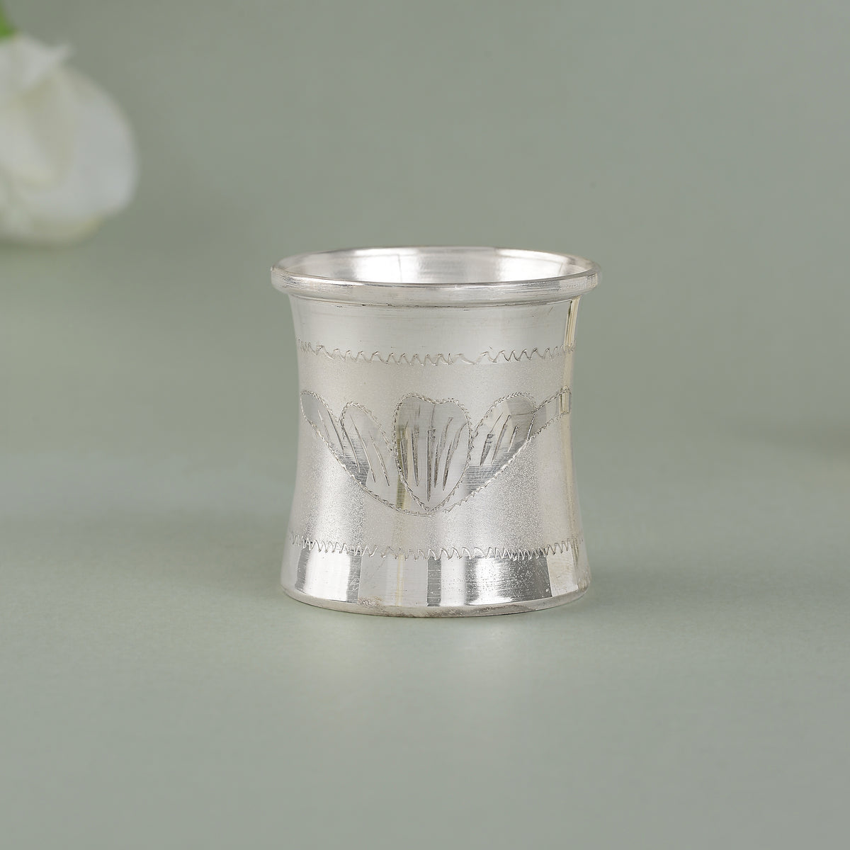 This elegant 92.5 silver glassware, with its curved structure and central floral embellishments, adds a touch of sophistication.