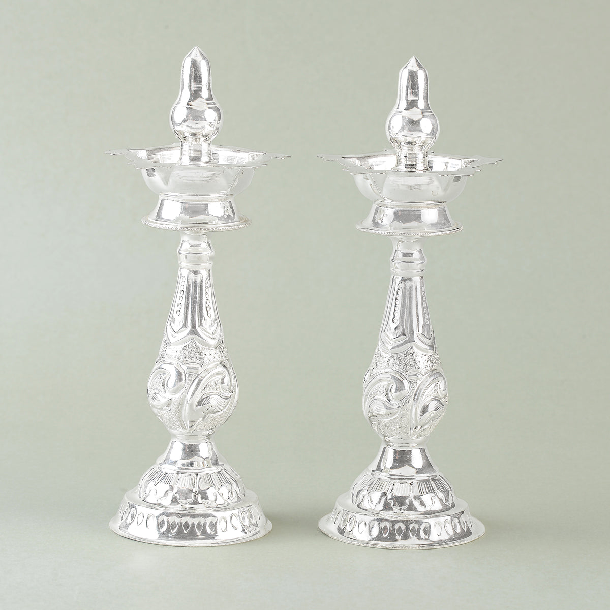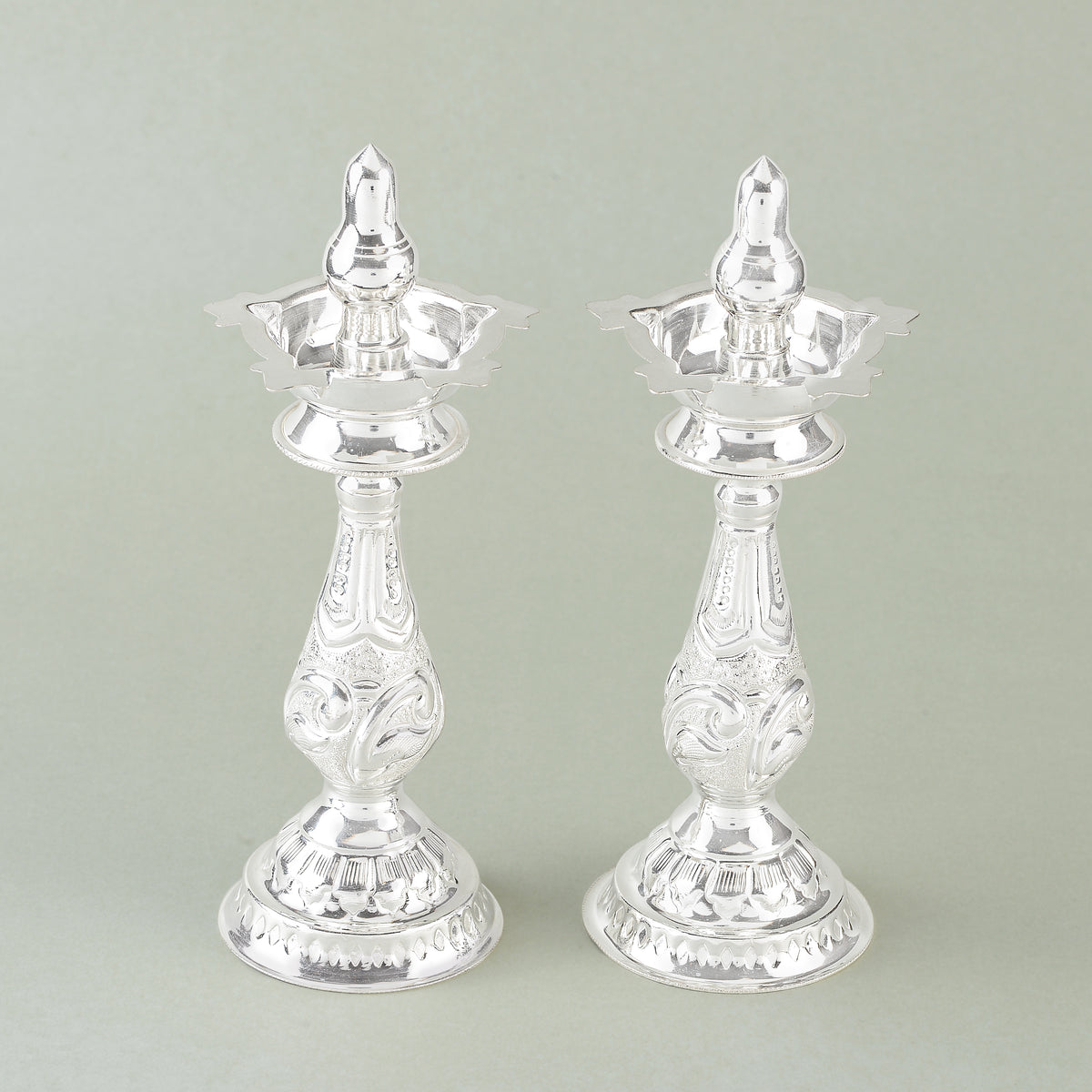 Expertly crafted with 92.5% pure silver, the Silver Deepam Stand is a stunning addition to any home. This exquisite piece not only serves as a traditional deepam stand, but also adds an elegant touch to your decor. Elevate your space with its timeless beauty and quality material.