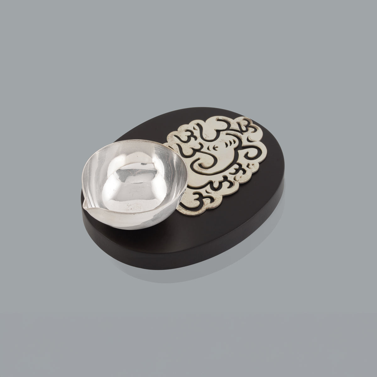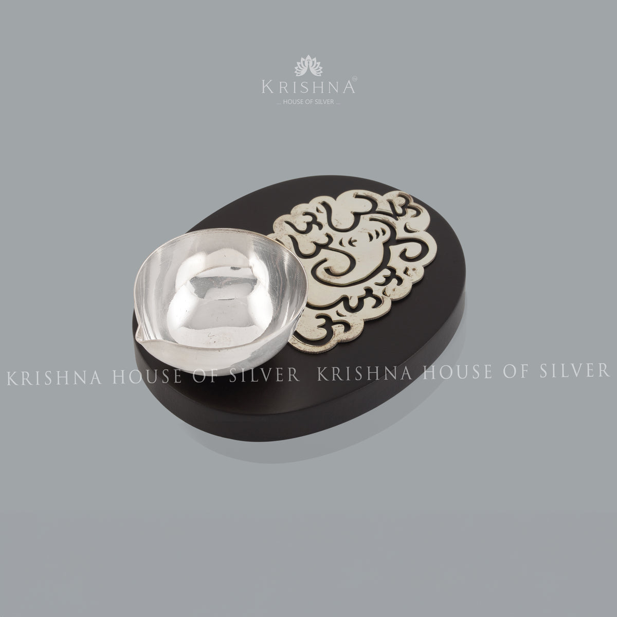 This Silver Diya is handcrafted with 92.5 silver and features a stunning wood craft design. The high quality silver ensures durability and a luxurious shine, while the intricate wood details add a touch of elegance. Perfect for adding a traditional touch to any home or ceremony.