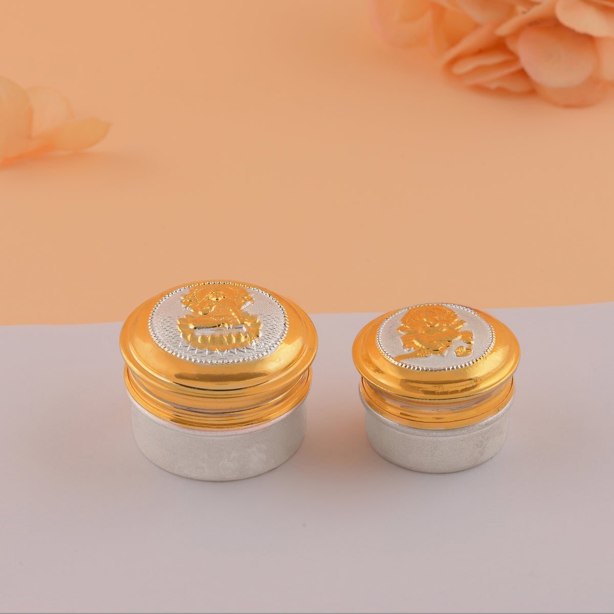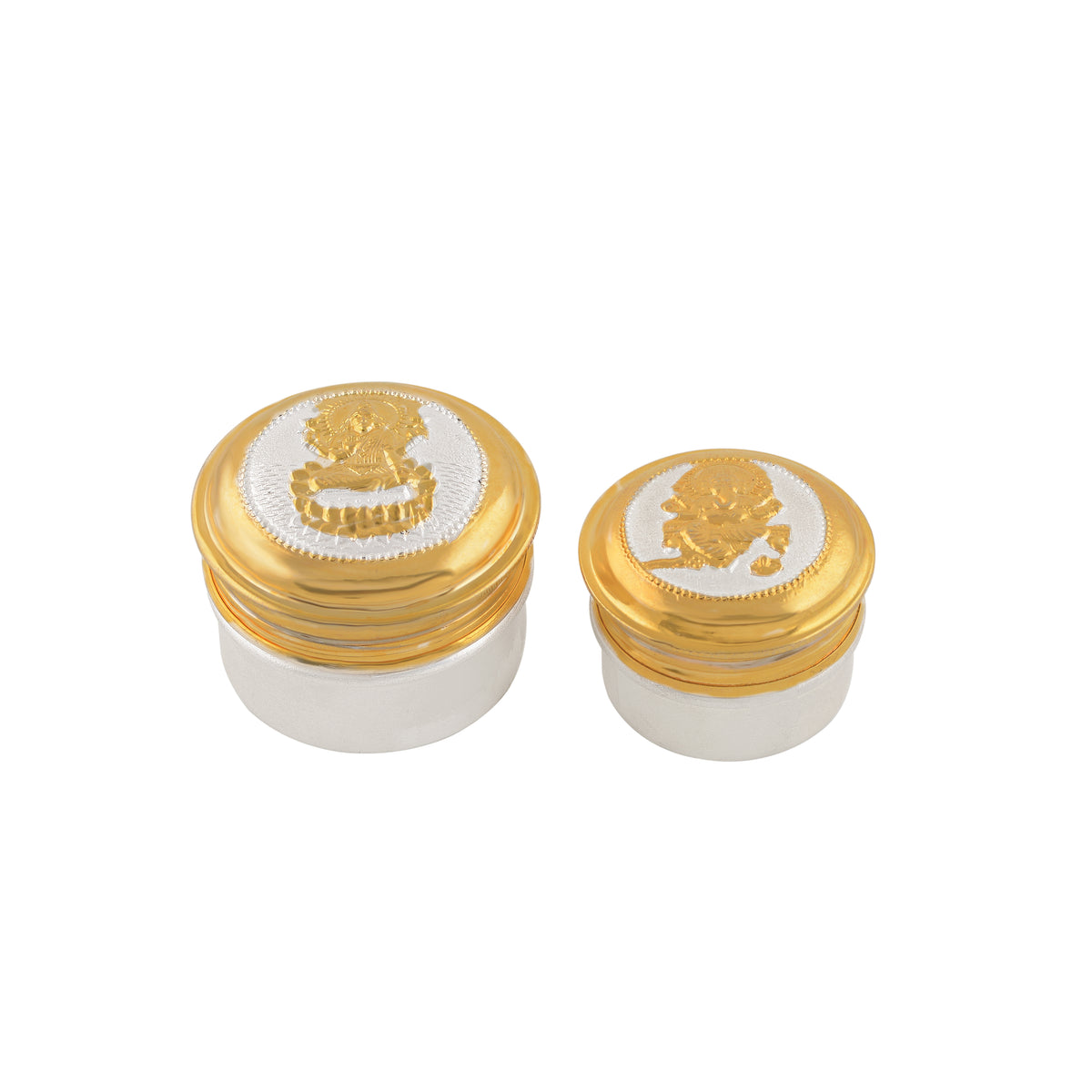 Expertly crafted from high-quality silver, this Kumkum Bowl features intricate designs of Ganesh and Laxmi Devi. With its elegant and traditional appearance, it adds a touch of charm and auspiciousness to any religious ceremony or home decor. Perfect for offering prayers and as a memorable gift for loved ones.