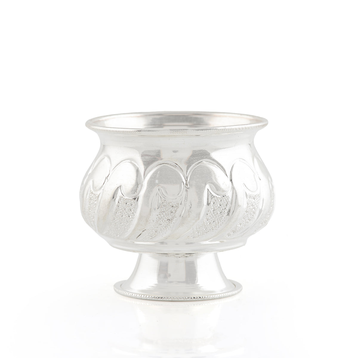 This exquisite 92.5 silver bowl, with its elegant pedestal-like base and flowing carved motifs, makes a stunning impression. Ideal for both display and serving.