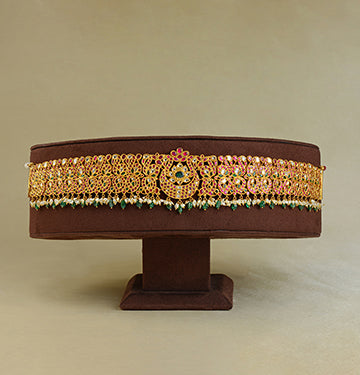 Embrace the Divine with Our Intricate Gold Kundan Vaddanam Pieces