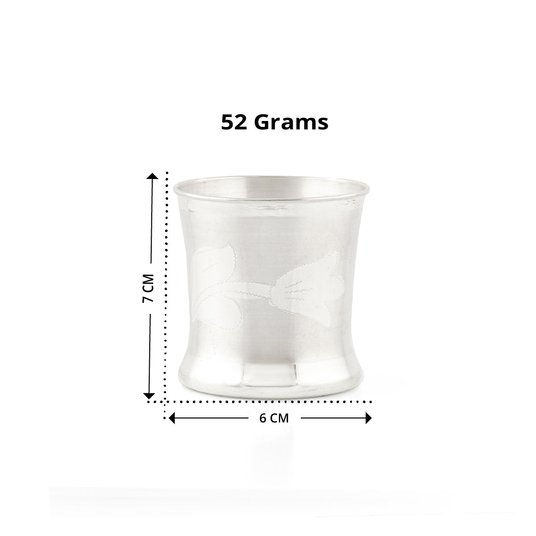 Embrace the sacred traditions with this exquisite 92.5 pure silver Panchapatra Glass. Crafted from high-quality sterling silver, this traditional ritual vessel is essential for various Hindu ceremonies and daily poojas. Its simple yet elegant design makes it perfect for holding holy water, milk, or other sacred liquids, often accompanied by a small spoon (udharni) and darbha grass for purification rituals. The lustrous finish and pure material symbolize auspiciousness and devotion, making it a cherished addition to your home altar or a thoughtful spiritual gift.