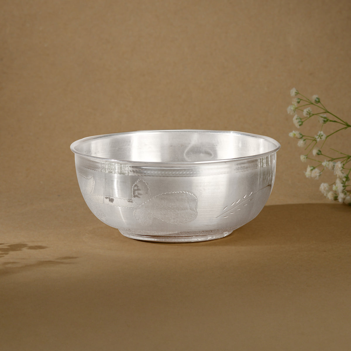 Bring purity and grace to your rituals with this beautifully crafted 92.5 pure silver pooja bowl. This elegant single piece features a smooth, polished finish and a classic, rounded design, embodying the understated beauty of sterling silver. Ideal for holding sacred offerings such as prasadam, holy water, flowers, kumkum, or chandan during your daily prayers and ceremonies. Its versatile design makes it a perfect addition to any home altar or a thoughtful gift for auspicious occasions. Crafted from high-quality silver, this durable bowl radiates spiritual energy and timeless charm