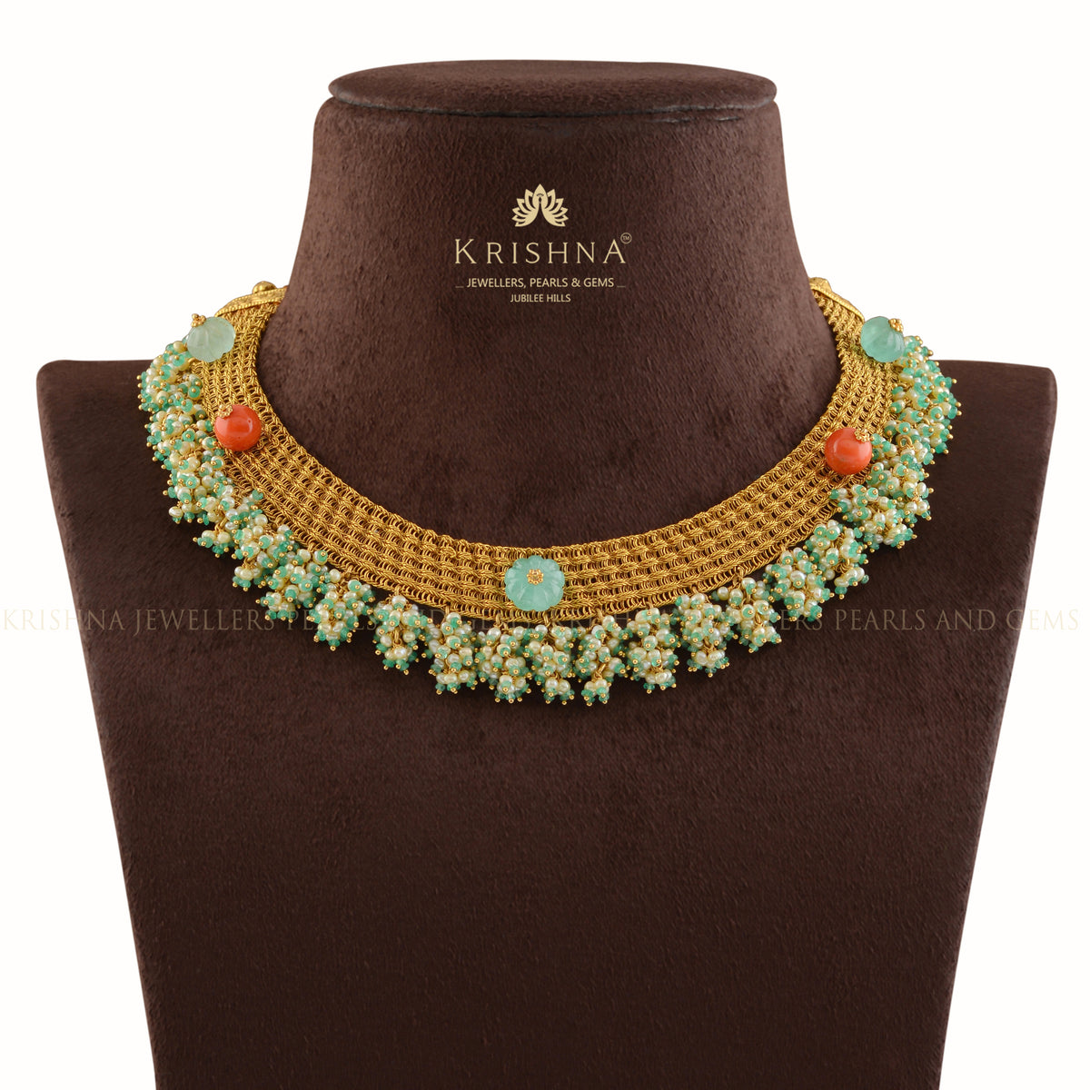 Emerald Gold Mesh Necklace
