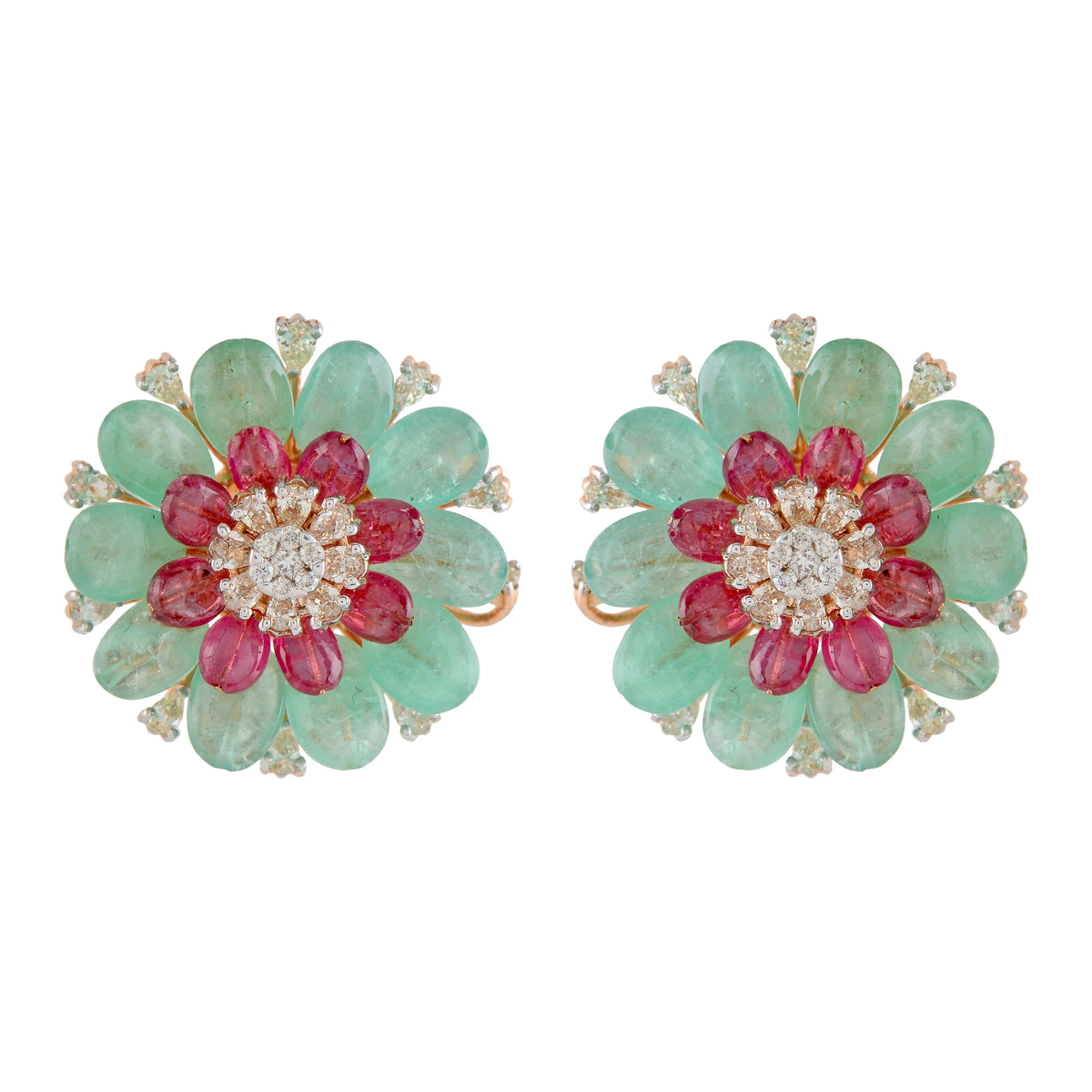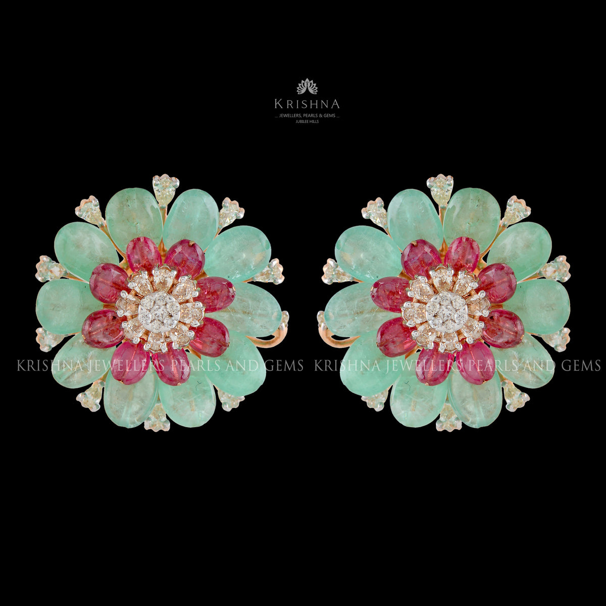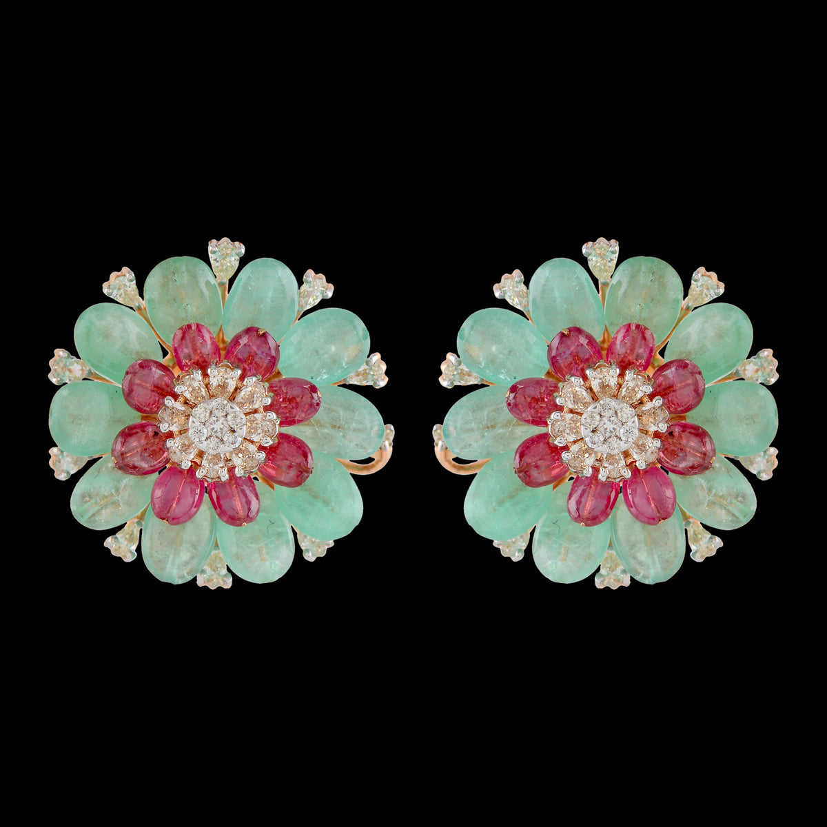 Embrace the enchanting allure of our Floral Ruby & Emerald Diamond Studs. Each exquisite bloom carries whispers of romance and admiration, inviting you to adorn yourself with nature's vibrant elegance.