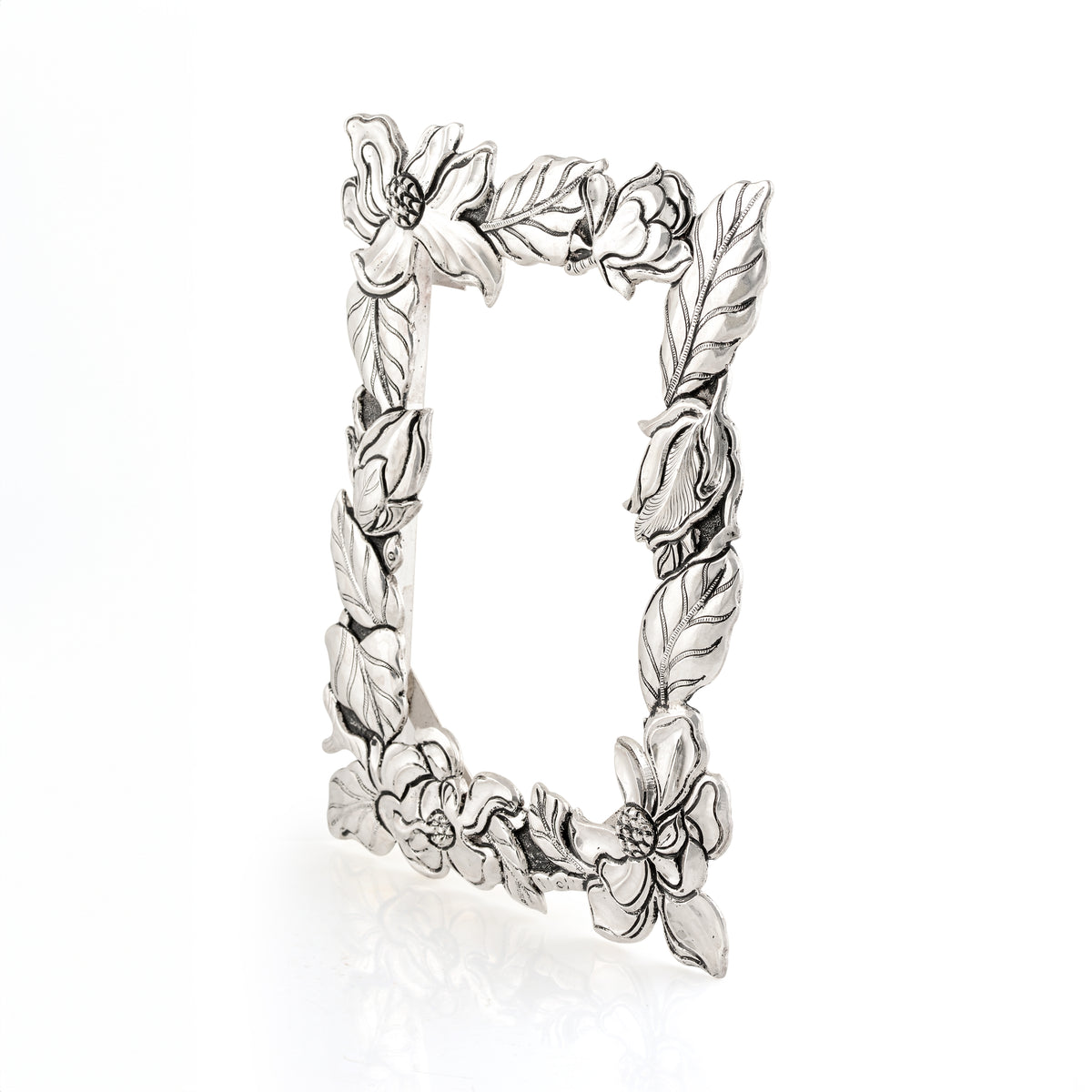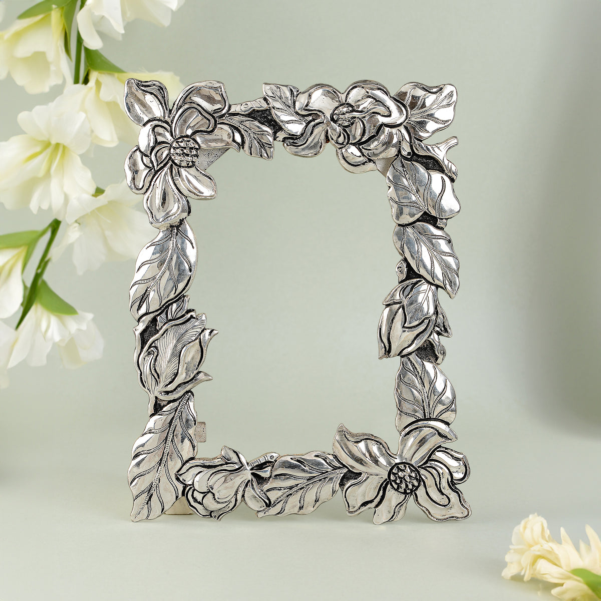 Elevate your photos with our Nakshi Work silver flower motifs frame. Its intricate floral design and silver finish add elegance and artistry to any image.