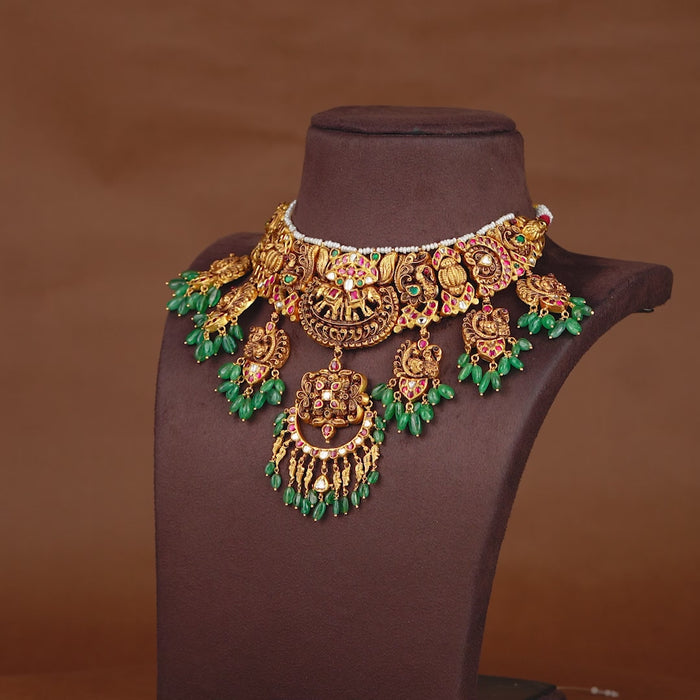 Adorn yourself in timeless elegance with our Gold Necklace, a masterpiece featuring captivating Elephant and Peacock motifs. This fusion of grace and charm adds a touch of tradition to any occasion, elevating your style to new heights. Embrace the exquisite craftsmanship and make a statement that resonates with sophistication and cultural richness. Let every detail tell a story of beauty, tradition, and individuality. Celebrate the artistry of life with this enchanting piece that transcends spiritual vibes and becomes a cherished symbol of your unique style.