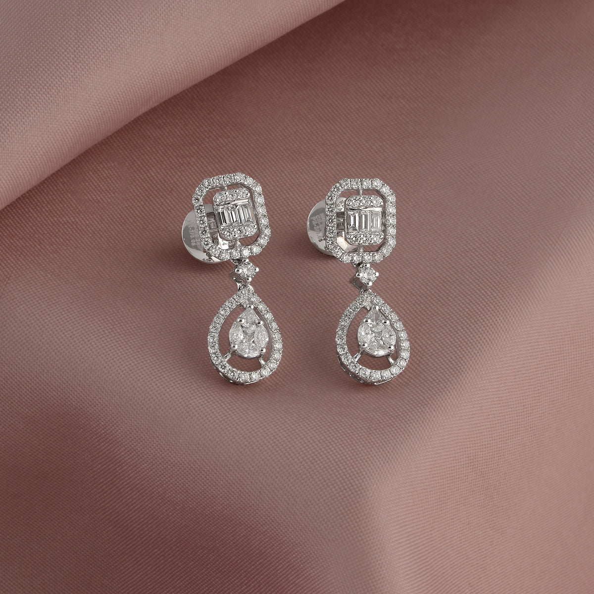 Add a hint of aristocracy to your entire look with diamond earrings crafted in 18K gold that feature marquise-cut diamonds in a flower motif. Adding a touch of timeless elegance to your style, these versatile diamond earrings gracefully magnify the allure of any attire.