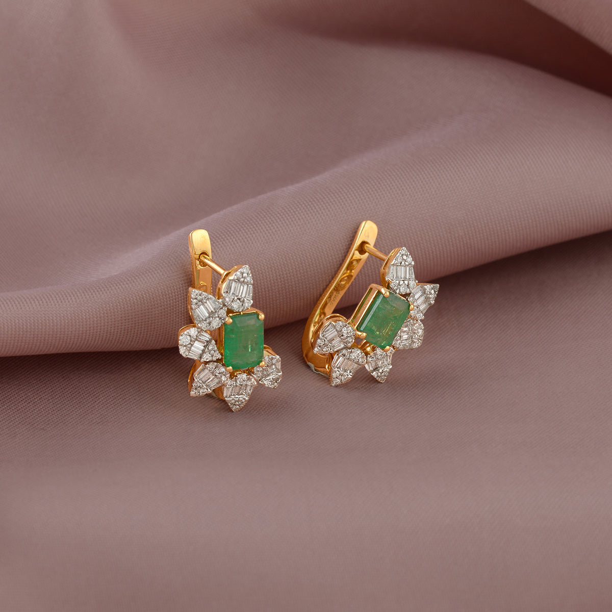 Emit a fashionable presence with these diamond stud earrings crafted in a flower motif in 18K gold with an array of milee diamonds that amplify their glitter. Add this piece of diamond jewellery to your jewellery vault to transform your everyday wardrobe and office attire with these adaptable diamond earrings.