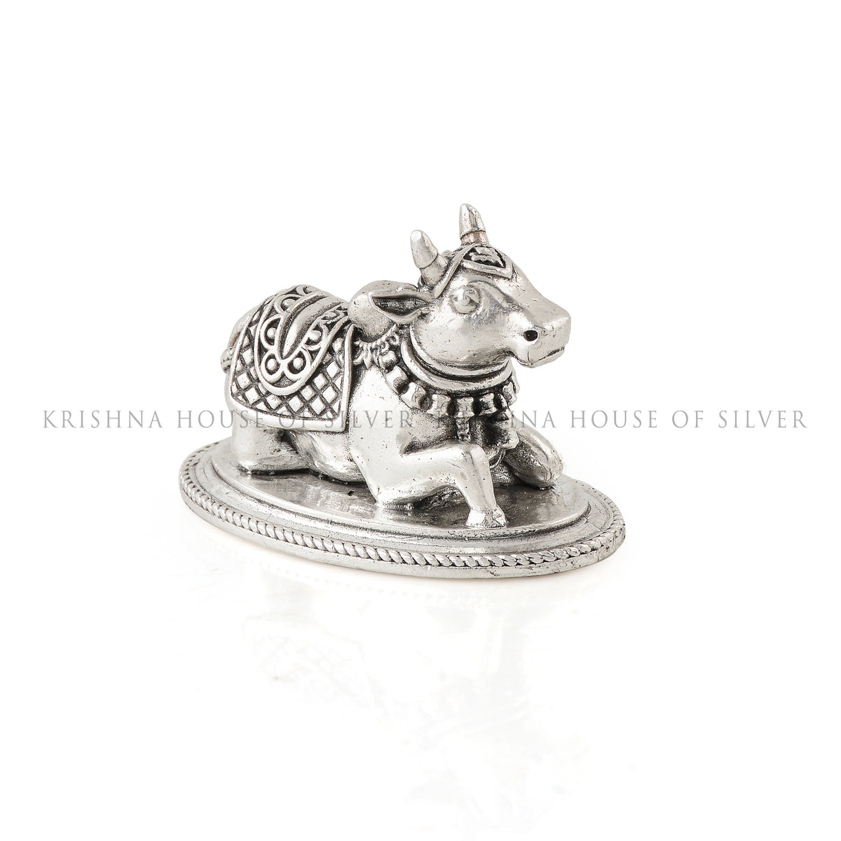 Intricate Craftsmanship: This Silver Nandi Idol is meticulously handcrafted with exceptional detail. From the texture of his skin to the intricate carving of his ornaments, every element is beautifully rendered.