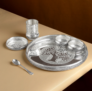 You can buy authentic, hallmarked silver dinnerware from reputed jewellers like Krishna Jewellers who offer handcrafted, certified silver utensils ideal for both personal use and premium gifting.
